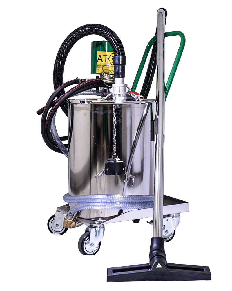 Con su cesta para virutas opcional, SPILLVAC® PressOut 50 ATEX recoge y separa sin esfuerzo los sólidos, virutas y virutas de los líquidos. Diseñada para espacios reducidos, su tamaño compacto y sus grandes ruedas garantizan una fácil maniobrabilidad. El sistema reversible de aire sin comprimir permite presionar líquidos 2-3 metros hasta cualquier lugar o contenedor. El paquete completo incluye acoplamiento rápido, manguera, tubo de aspiración y boquillas.