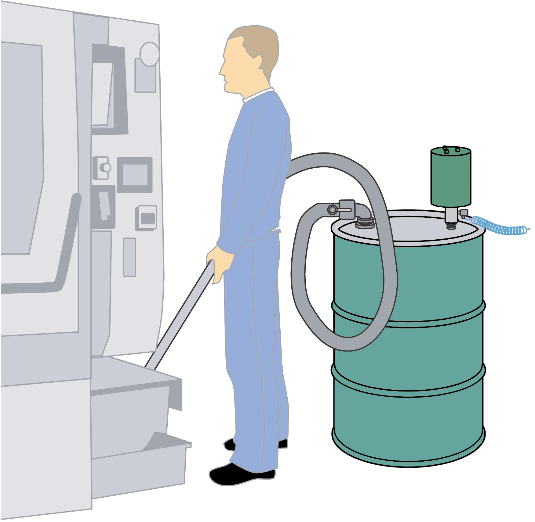 SPILLVAC Basic vacuums directly into a standard drum which becomes packaging for storage or transport to recycling, disposal or destruction. Vacuum slurry, oils, cutting fluids, and dust-free solids.